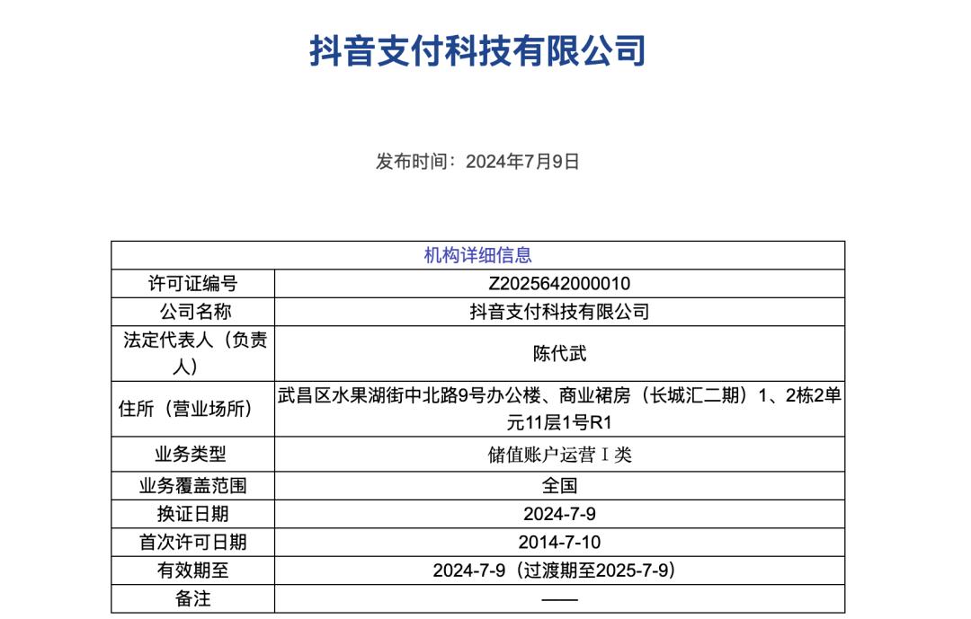 抖音集团在支付业务上的努力并不局限于增资,2024年抖音也希望获得第二个支付许可证。