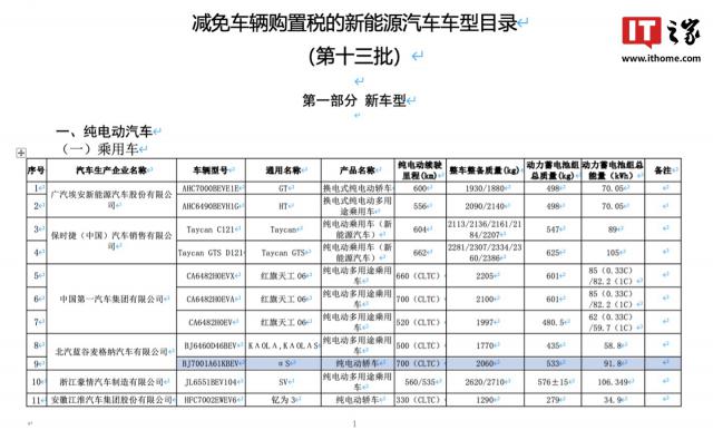 IT 世家 1 月 5 日消息,极狐阿尔法 S 目前,新车型已出现在工业和信息化部《新能源汽车减免车辆购置税目录(第十三批)》文件中,参照文件,这个版本的车型将搭载 91.8 千瓦时电池组,CLTC 纯电续航里程 700 公里。