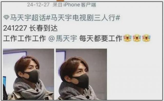 三人行12 月 29 日本开机前,网上传出的男主角分别是李明德和徐梦洁,直到官宣才成为马天宇。根据微博 IP,可以确定马天宇开机前围读不在,所以巧妙地表示“入组时间都是前期和剧组协商好,而非直接承认没有参加围读。但是按照马天宇的行程,他当天参加完开机仪式就离开了,还有一位工作人员爆料说当天在他的房车旁没有看到他。