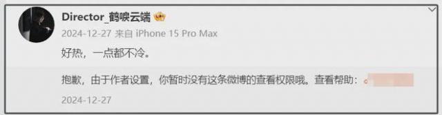 在导演微博上搜索马天宇,也可以看到他删除了自己转发的马天宇微博。文案是“好热,一点都不冷”,和普通剧宣对话完全不一样。