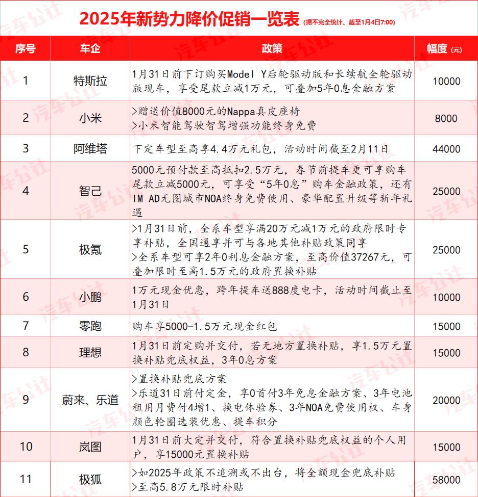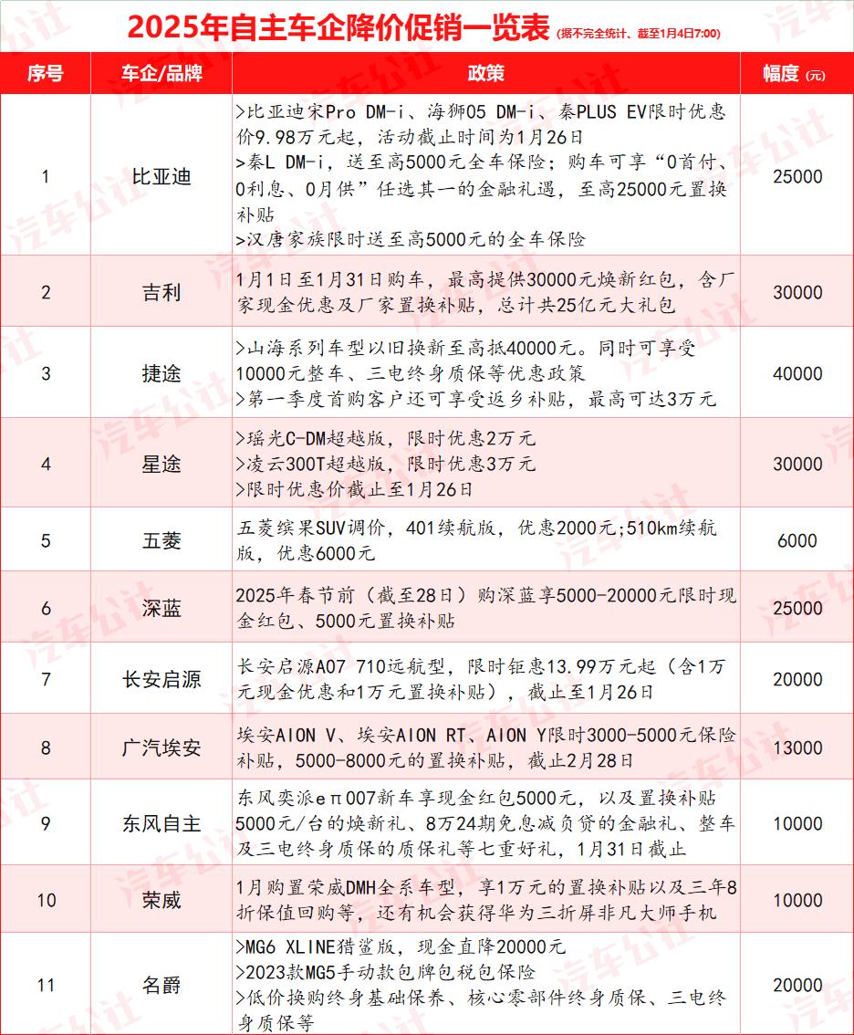 似乎每个节假日、新年伊始或春节前夕,汽车市场的降价促销也不例外。但与过去1000元的其他小打小闹相比,今年开始的推广力度似乎不小。特别是2024年12月31日国家和地方以旧换新补贴到期时,很多车企开始自行为消费者“续费”,以从容应对退补带来的影响,稳定1月份汽车销量。