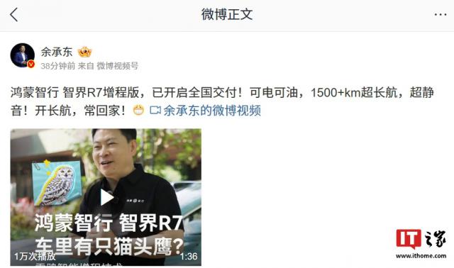 IT 之家 1 月 5 每日消息,华为常务董事、终端 BG 智能汽车解决方案董事长 BU 董事长余承东今天宣布,鸿蒙智行首款轿跑车 SUV —— 智界 R7 增程版汽车开放全国交付。
