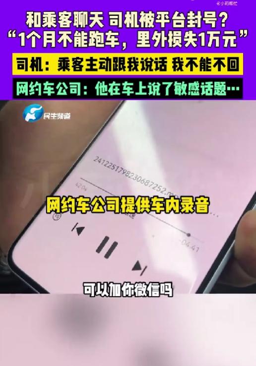 网约车司机加女乘客微信被封30天:车内音频曝光 官方回复