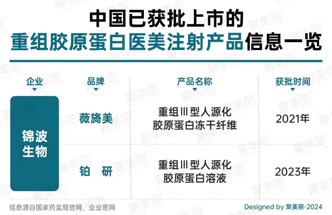 但作为注射填充注射剂,重组胶原蛋白注射产品技术壁垒较高,审核周期长,控制更严格。到目前为止,只有金波生物旗下的美丽和“铂研”胶原针获得了成功的批准,被视为蓝海。