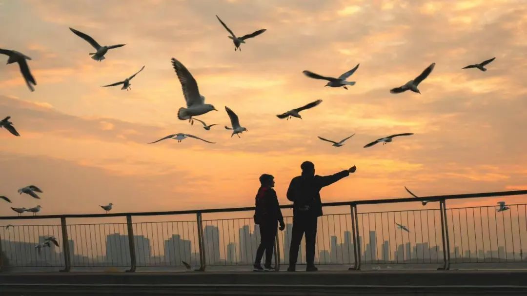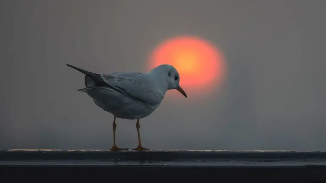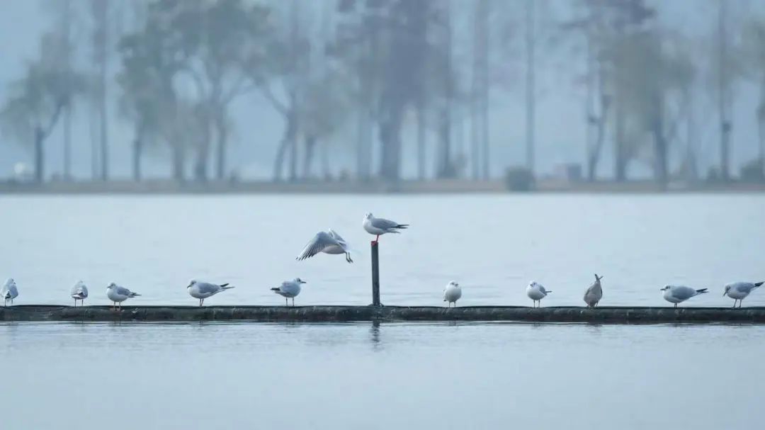 红嘴鸥来自西伯利亚,在天空中翱翔。