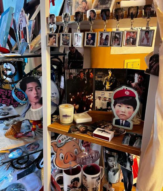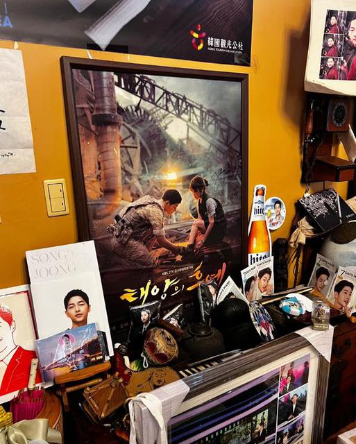 房子的墙上贴满了宋仲基参演的影视剧海报和纪念品。其中,最引人注目的是宋仲基与前妻宋慧乔·京合作的海报《太阳的后裔》。海报上,宋仲基俯身帮宋慧乔·京绑鞋带,画面温馨浪漫。然而,当时两个因为这部剧而相爱的人并没有在戏外继续这种甜蜜,婚姻只维持了两年就分开了。