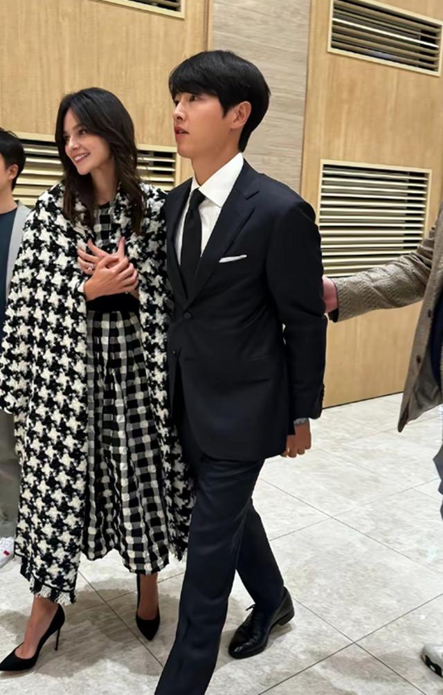 不,当他和网友聊天时,他慷慨地分享了他的全家福。放大照片显示,其中一张是宋仲基和他的妻子凯蒂穿着韩服拍摄的全家福。虽然我看不清楚每个人的五官,但不难看出,凯蒂在拍照时抱着孩子,而宋仲基则站在妻子和孩子身边,笑得很开心。