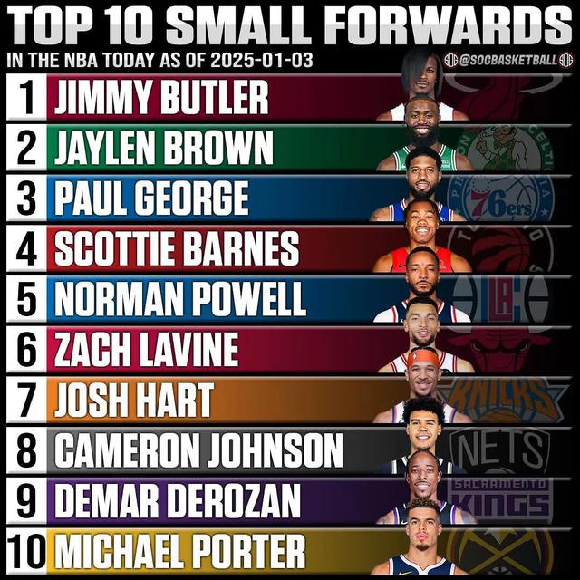 2025 巴特勒、杰伦布朗、乔治、斯科特巴恩斯、诺曼鲍威尔、扎克拉文、约什哈特、卡梅伦约翰逊、德罗赞、小迈克尔波特,目前小前锋位置最好的球员。