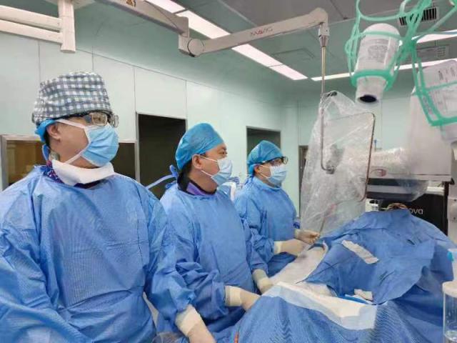 公永太教授团队在导管室护士宋广超的密切配合下,在腔内影像指导下选择 DK-CRUSH 双支架手术,安全快捷地完成介入治疗。放置支架后,病人胸痛症状迅速缓解,病情化险为夷。