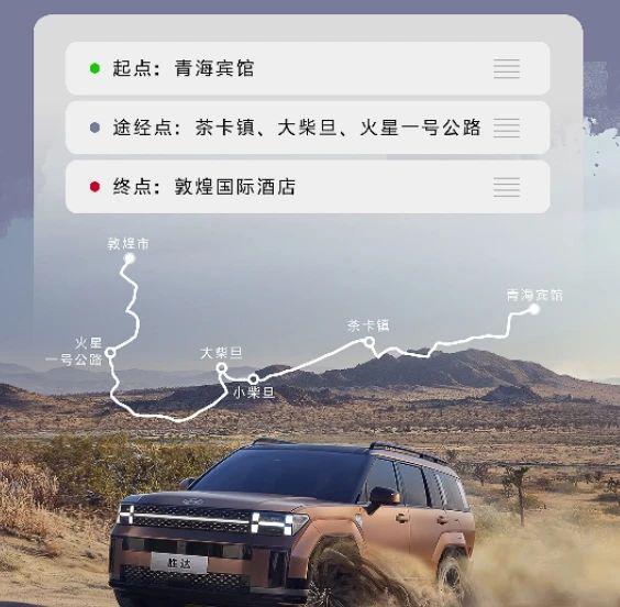 本期,我们将驾驶第五代胜达,来一场比赛。 5000 从青海到敦煌的长途驾驶体验,如茶卡镇、大柴旦、火星一号公路等。,涉及高速、省道、戈壁、沙漠等环境。在极限环境下挑战第五代胜达的实际表现,真的很刺激。