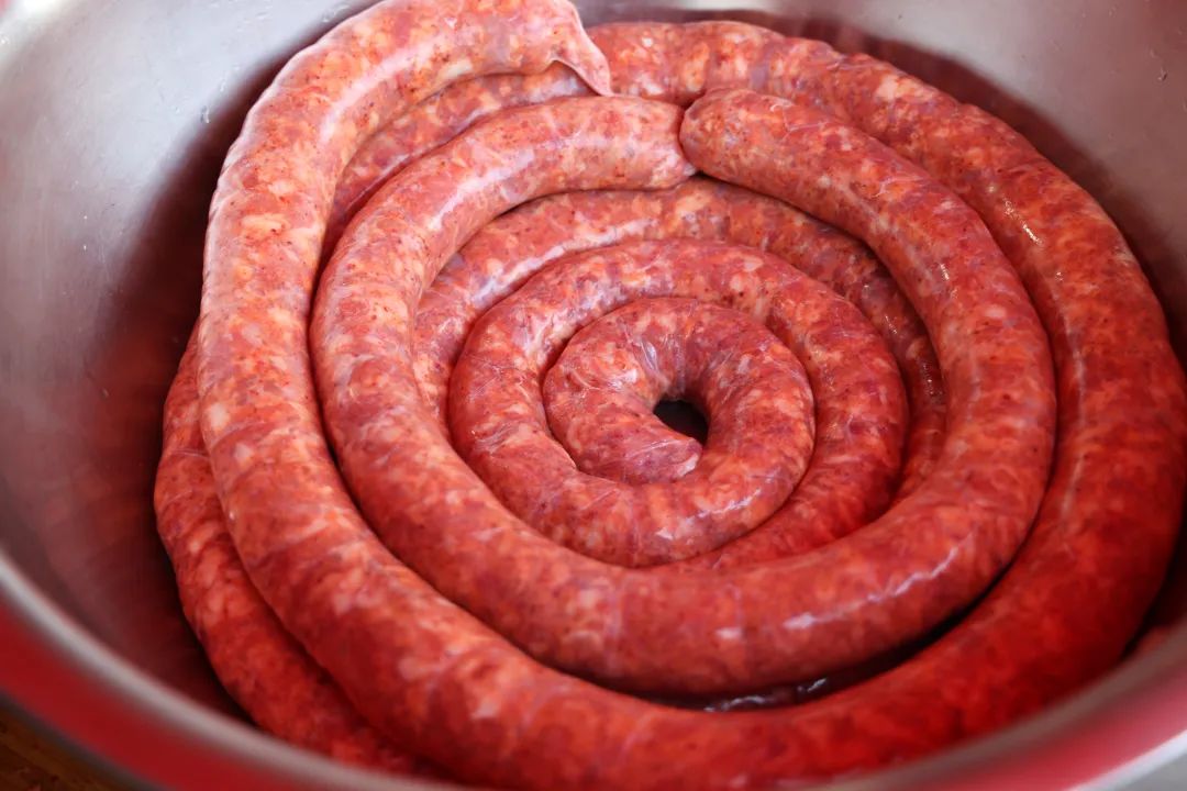 李惠娟说:“香肠的味道如何取决于肠道的软硬湿度,爱吃做的就放久一点,不柴还带点软的时候最好吃。”