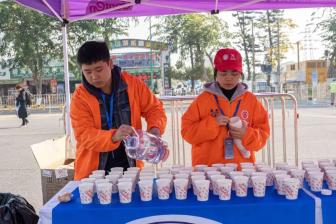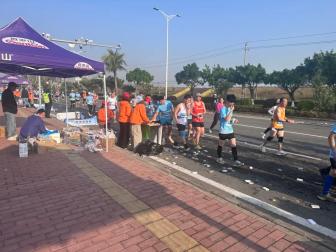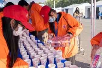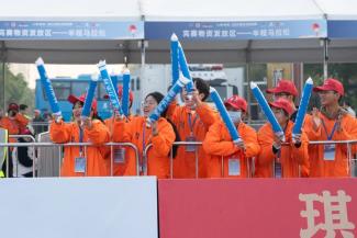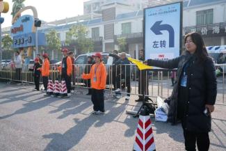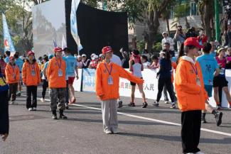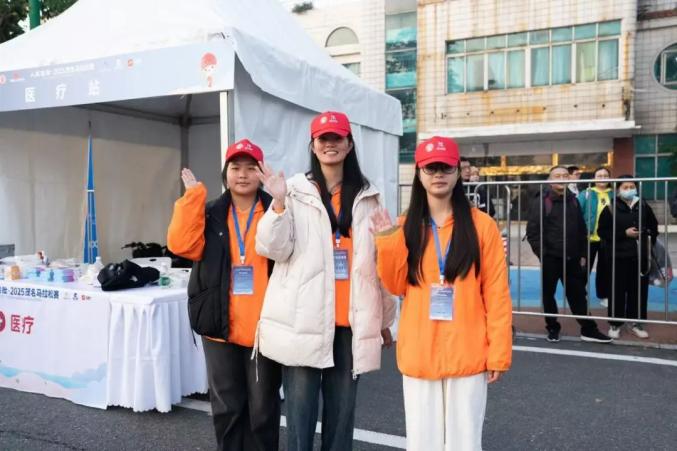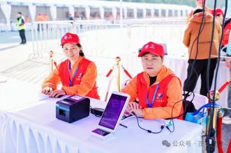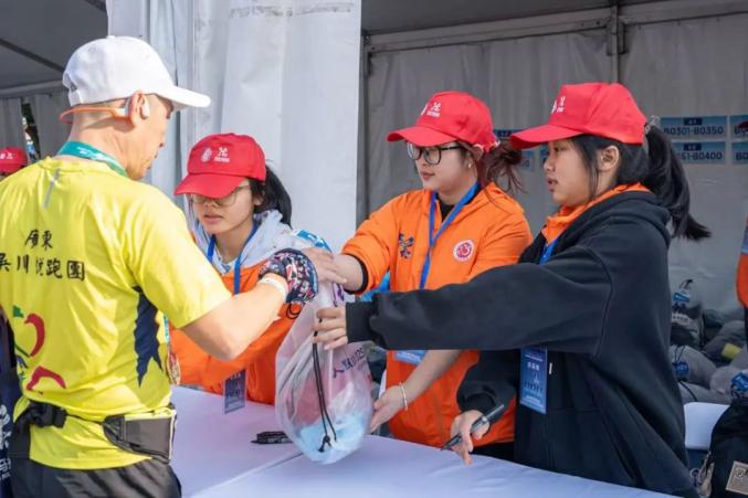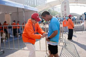 志愿者们致力于比赛前的物流保障和起跑秩序,从发令鸣枪、检查存包、布局起点、场地布局到构成人墙。啦啦队的志愿者们在跑道外挥舞着双臂,为选手们加油。