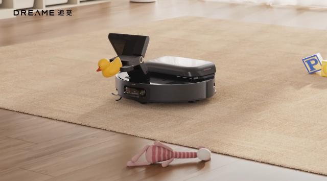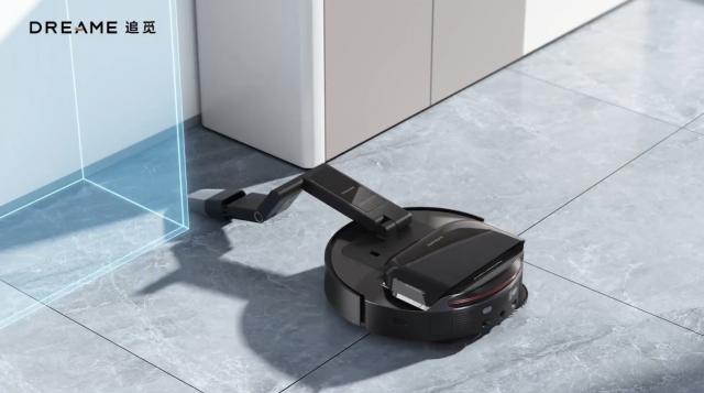 通过联动设备上方的盖子,机械臂可以实现隐藏式收纳。另外,机械臂还有更换件,支持清理当前空间的边缘区域。