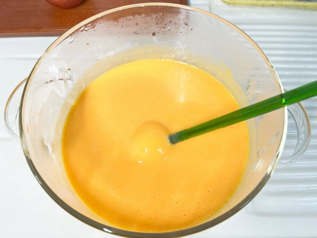 4.在木瓜牛奶中加入适量的冰糖和炼乳剂,文火加热至60℃。;