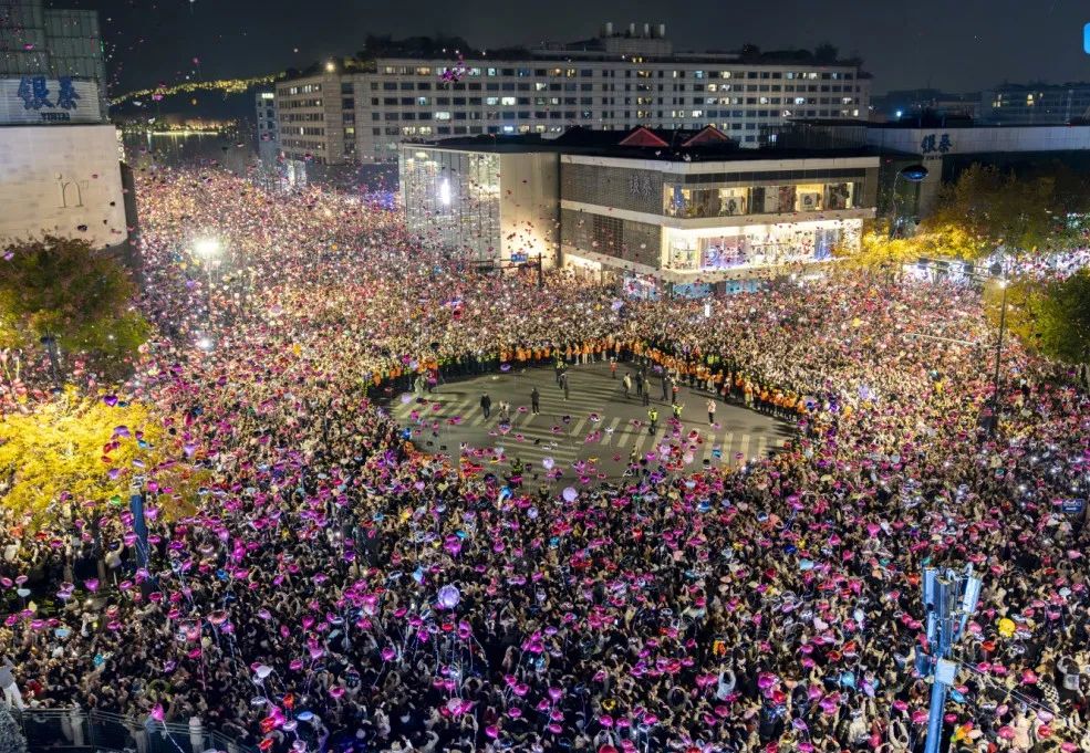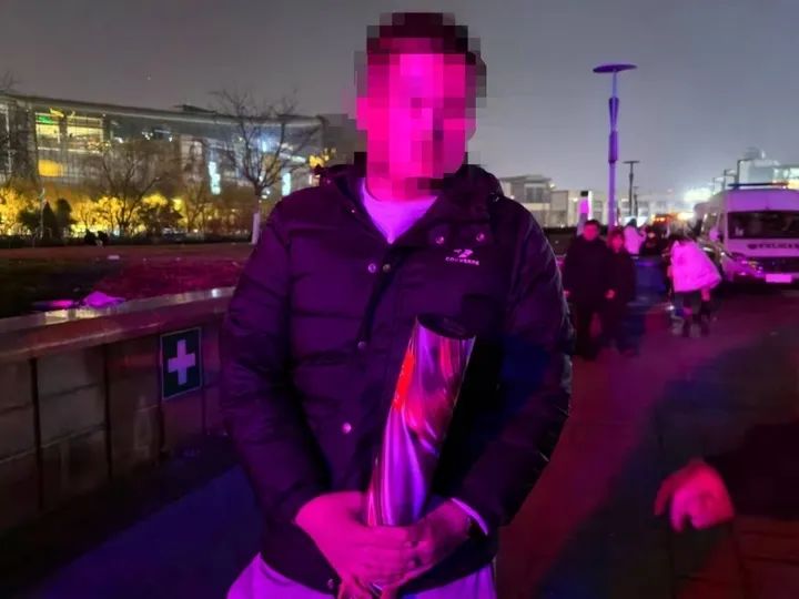 一名男子在泉城广场北侧非法燃放“加特林”烟火