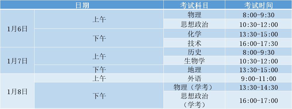 为期三天的“第一次考试”在科目和时间安排上与往年基本一致。唯一不同的是,物理和思想政治科目的考试安排在选拔考试结束后,将于1月8日下午举行。