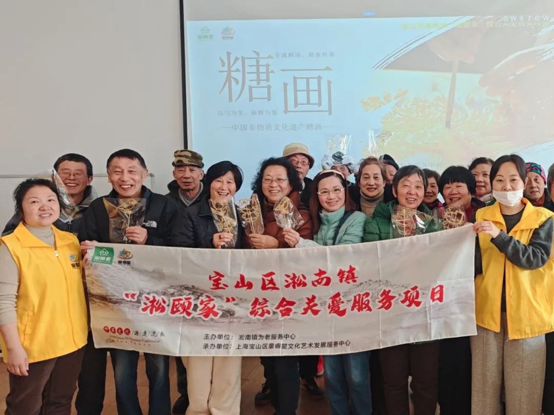 糖画,顾名思义,就是糖制成的画,也是糖制成的,可观可食。这种古老的民间艺术承载着许多人的童年记忆。为了弘扬和传播非物质遗产,感受独特的生产工艺,宝山区淞南镇近日组织开展了“淞颐家”综合护理服务项目非遗糖画活动。
