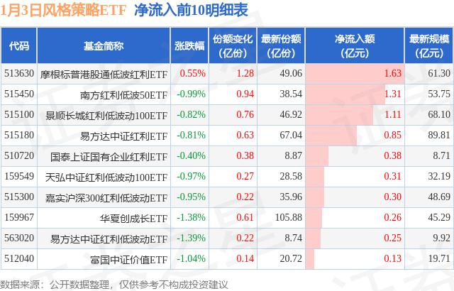 当天有 22 只风格策略 ETF 资金净流入显示,其中摩根标普港股净流入排名第一。 ETF(513630),份额增加 1.28 十亿份,净流入额为 1.63 亿元。