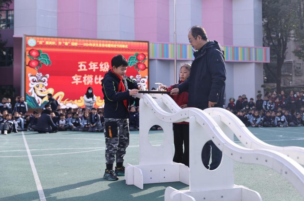现场,齐一集团、杭州路第一小学、民星路小学的学生举办了一场精彩的车模比赛。孩子们带着“战车”出现,控制他们在跑道上驰骋,展示他们独特的设计、出色的性能、精致的控制和实用的创新,赢得了老师和学生的掌声,充分展示了学生在科技探索和创新方面的无限潜力。