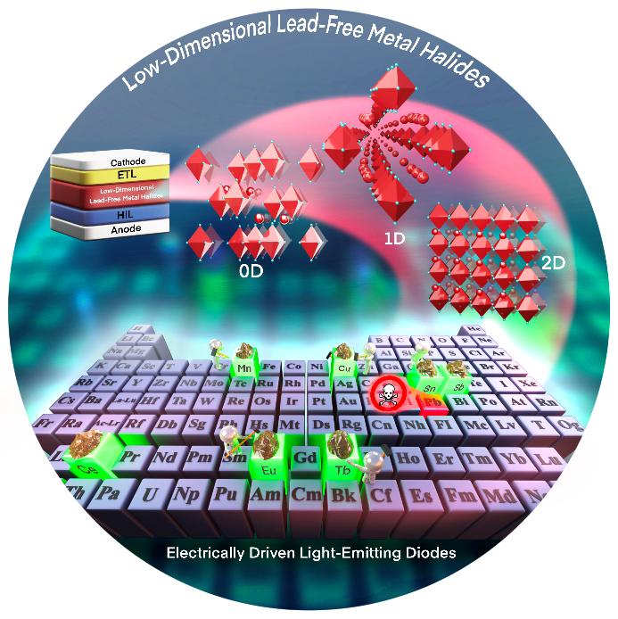 电力驱动发光二极管(ED LEDs)凭借其在现代照明、显示和数据传输方面的显著优势,其高效、长寿命和节能已经成为关键技术。铅基卤化物钙钛矿(LHPs)在ED方面,凭借其优异的光电性能, 在LEDs方面取得了显著进展。然而,尽管LHPs在光电设备领域表现突出,但其毒性和多变性仍然限制了其大规模的商业应用。