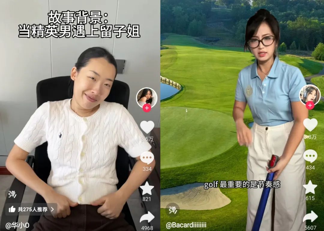 “金融男”和“精英男”是被吐槽最多、被模仿最多的一类。“装逼”是这些视频的通用主题。博主@华小O、@像Bacardiiiiiiiiiiiiiii这样的反串视频已经出现过很多效仿“金融男”和“精英男”的视频。