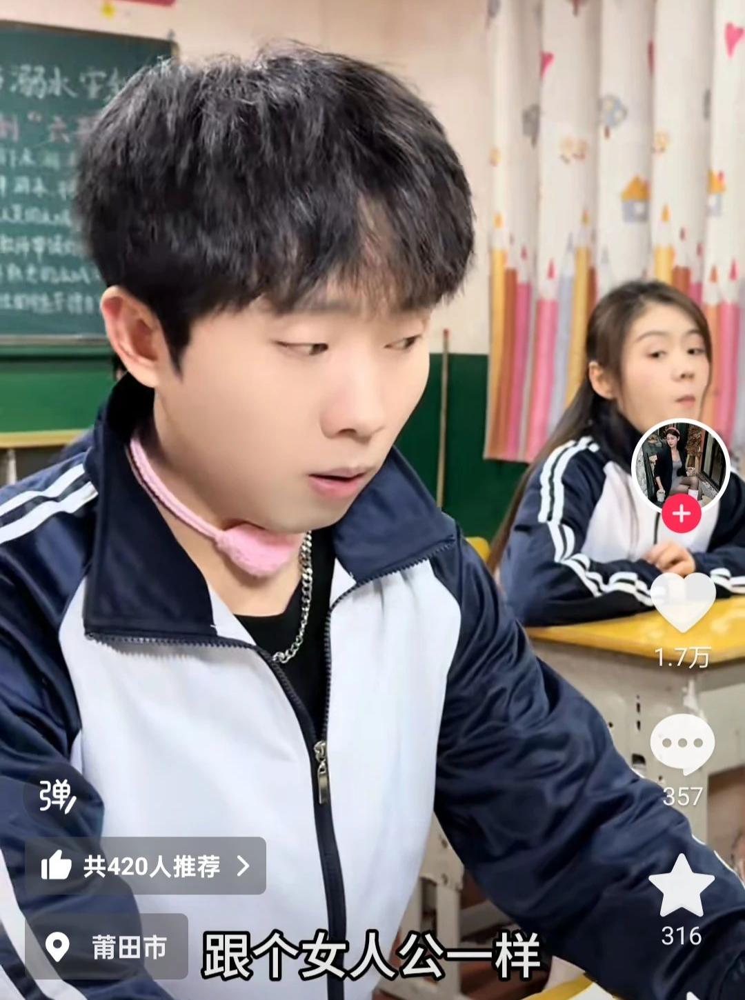 这时,我们来看看@阿喵(福建第一内向)的视频。在某种程度上,这种“性别转移”的视频也与平台内部创作者前期的不断创作和积累有关。这是新时代新平台和新一批创作者围绕用户新需求创作新故事的体现。