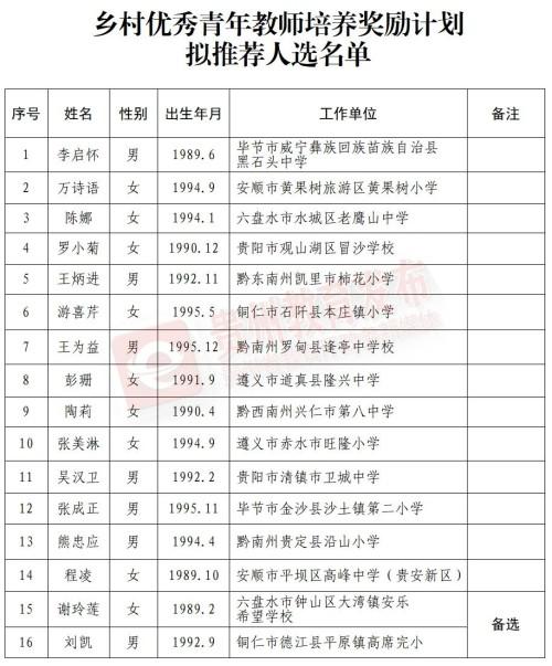 贵阳市2名教师获得推荐~省教育厅公示名单