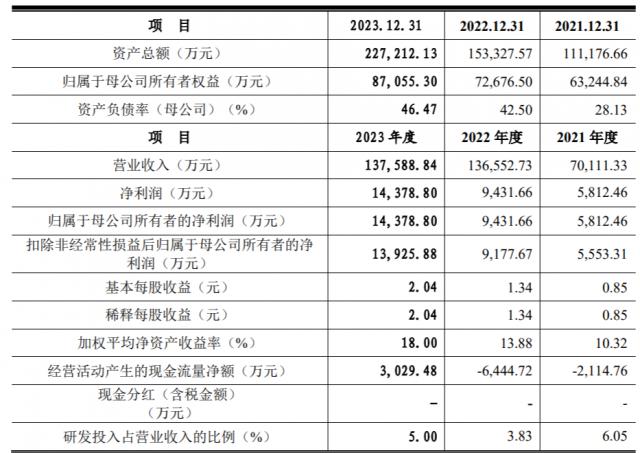 业绩方面,2021 至 德斯泰的营业收入分别为2023 7.01 亿元、13.66 亿元及 13.76 1亿元,扣除非经常性损益后的净利润分别为 5553.31 万元、9177.67 万元和 1.39 亿元。
