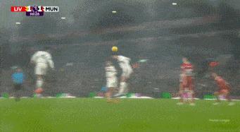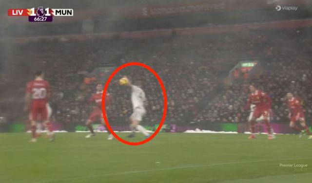 第 52 分钟,曼联 1-0 领先。但是,只是 7 几分钟后,曼联失球,失球的主要责任人是德里赫特。利物浦左路进攻,加克波雷区接球。德里赫特立即上前铲球。