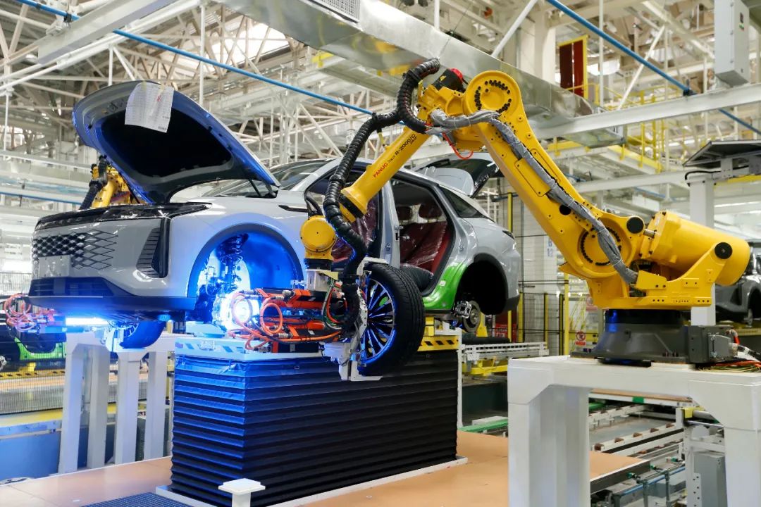 即墨汽车产业的绿色转型不仅仅是“无废工厂”这一“杀手锏”。奇瑞青岛工厂,被称为“超级工厂”,仅用17个月就创下了奇瑞全国13家全车工厂建设的“青岛速度”。看智能制造,近年来,奇瑞青岛超级工厂在冲压、焊接、涂装车间选择了智能机器人,真正实现了“黑灯厂”,自动化率达到100%,以5G。 依托工业物联网平台,实现智能化生产、数字化品控、信息化管理、透明化经营。