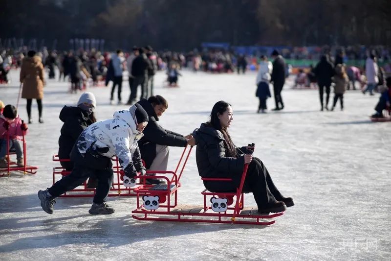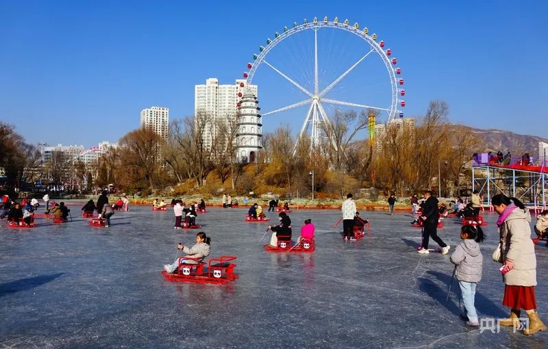 虽然已经是严冬腊月,但在青海省西宁市城市中心的西宁市人民公园里,确实是一派热情的景象,西宁市人民公园的人工湖变成了一个巨大的滑冰场,吸引了许多市民和游客前来体验冬季冰上运动的喜悦。