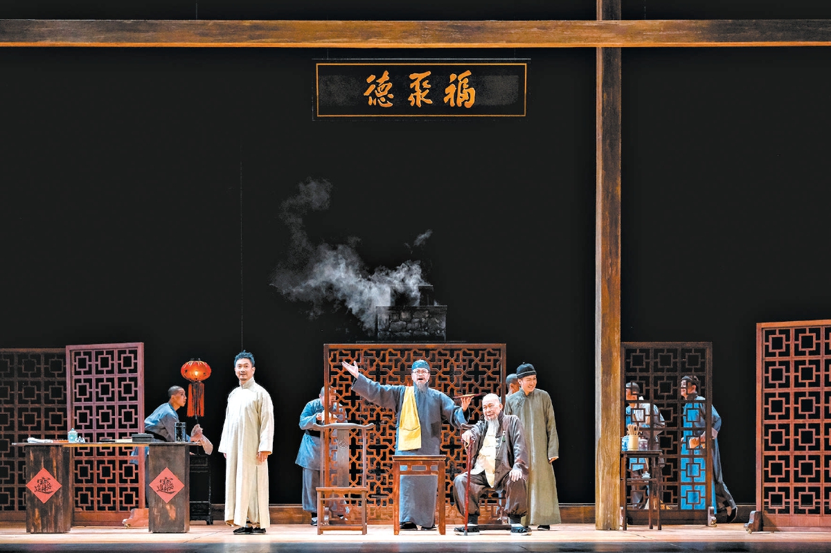 港版《天下第一楼》的成功再次上演。一部真正好的剧,一定要有经验丰富的剧本,这样才能经得起时间、方言甚至不同语言的转换。毫无疑问,《天下第一楼》的内容容量是巨大的。剧中各种各样的人物处于不同的阶层,不同的关系,照见不同生活的酸甜苦辣,写出人情冷暖和人性悲欢离合。剧中跑堂常贵中风倒下时,剧场里安静得听不见呼吸声。在整部剧的结尾,“挂旗”的场景似乎又回到了开场。在漂萍粉碎的时代,世界的轮回只是“繁荣,人民苦难;死亡,人民苦难”,但还是有像卢孟实这样挣扎着往上走的人,希望靠自己的努力不被大家看不起,活出新鲜的生命力。