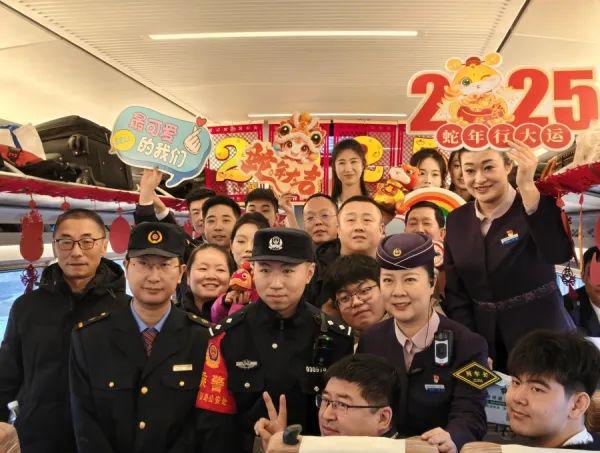 1 月 5 日 8 时 33 分,随着火车慢慢驶出长春西站台,一场热闹的火车联欢活动拉开帷幕。窗外银装素裹,车内暖暖的。走进 G394 在第二次火车晚会的现场,拉花福字、各种挂件、蛇年娃娃等。一下子把乘客带入了浓厚的活动氛围。火车工作人员精心准备了歌舞、吉他弹唱、互动等阶段,给乘客留下了难忘的乘车体验。