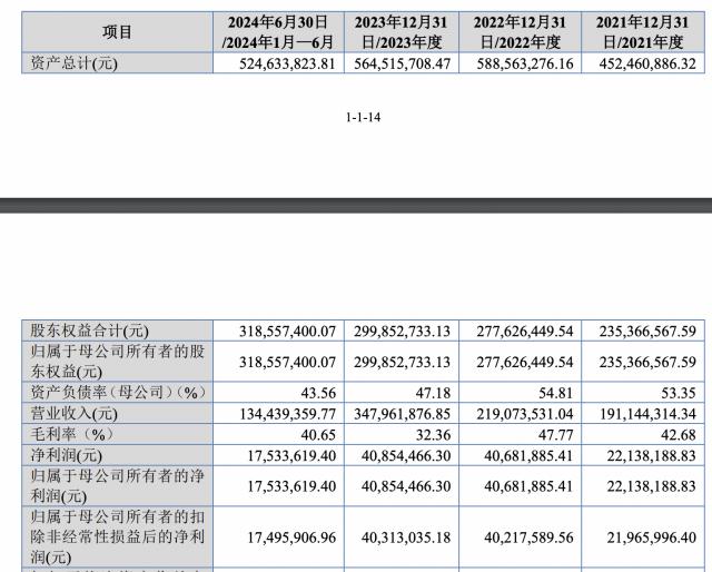 2021 年到 2024 今年上半年,长江能科收入分别为 1.91 亿元、2.19 亿元、3.48 亿元及 1.34 净利润分别为亿元 2213.82 万元、4068.19 万元、4085.45 万元及 1753.36 一万元,毛利率分别为 42.68%、47.77%、32.36%、40.65%。