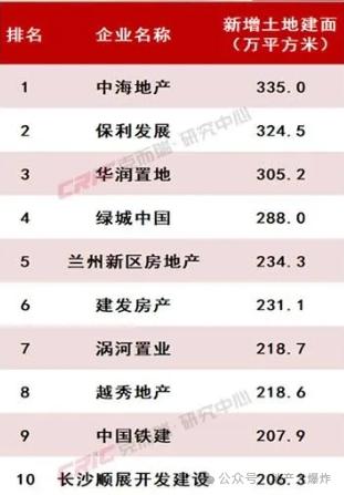 2024年克而瑞新增土地建筑面积排行榜,来自兰州新区城投公司旗下的兰州新区房地产排名第五。