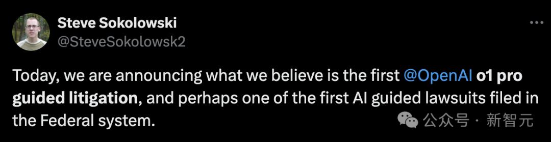 OpenAI首次由OpenAI首次进行。 o1 在美国联邦法院系统中,pro引导的诉讼可能是AI首次引导的诉讼, 最近由Steve组成 Sokolowski公布了细节。
