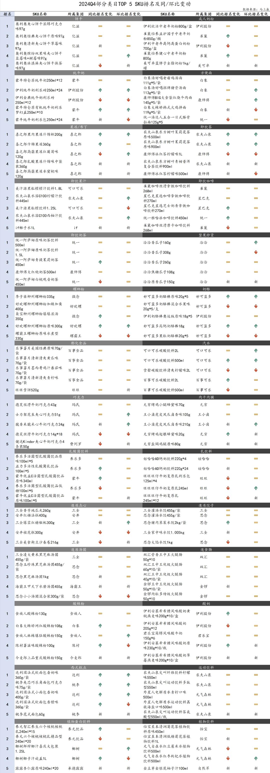 第一个是TOP SKU,以下TOP中的TOP 2024Q4SKU品类TOP SKU,同比季度为2023Q4,环比季度为2024Q3。