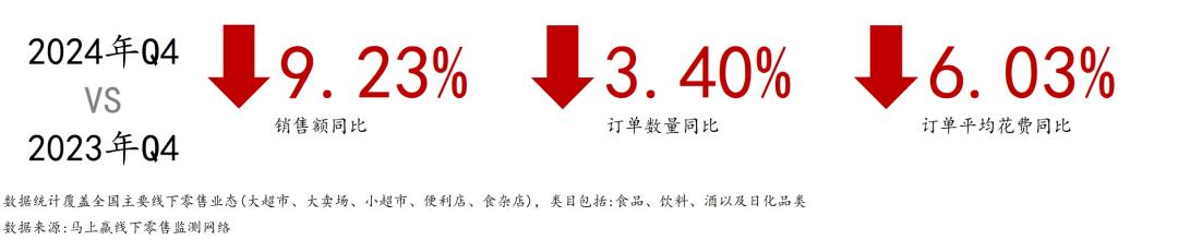 本周,我们将重新审视2024Q4的线下零售消费情况,参考对象中,同比对象为2023Q4,环比对象为2024Q3。