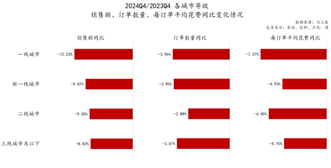 第一,在这个季度的情况下,2024Q4同比2023Q4的销售额、订单数量和订单平均成本都有不同程度的下降。