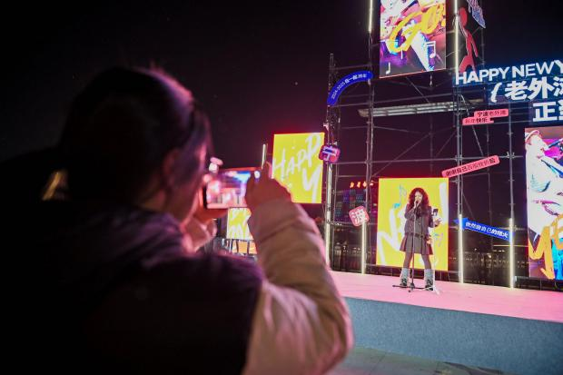 位于老外滩一期的广场化身为除夕夜狂欢的中心舞台,红人街头音乐会的场景吸引了不少观众。歌手乐队不断出现,用不同的歌唱形式和强烈的情感表达温暖的冬天。