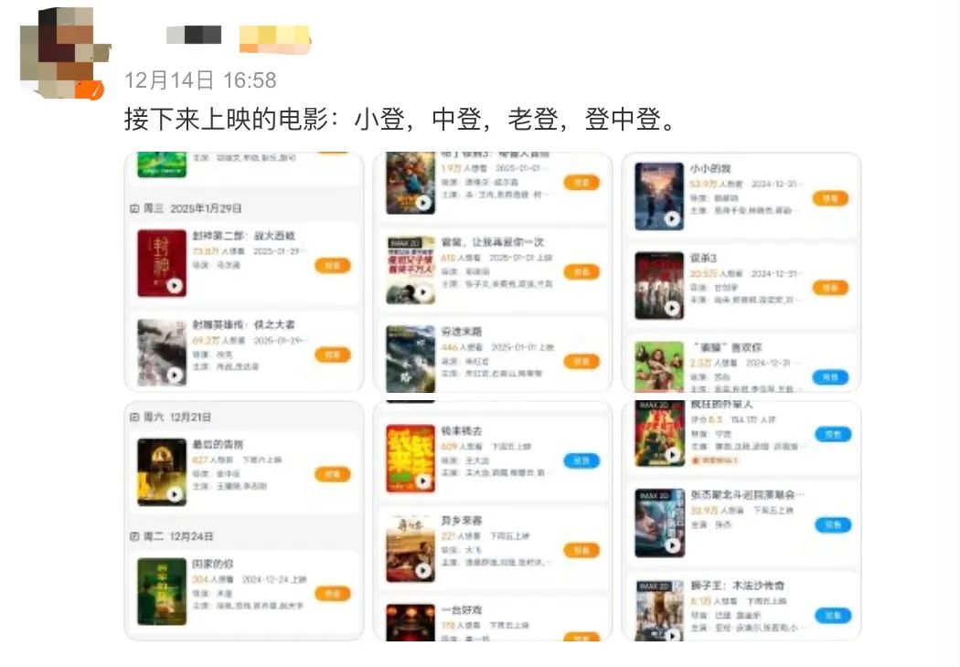 如果说脱口秀领域的“普信男”或者杨笠的无意插柳,会引起她自己可能看不到的强烈反响。所以,当更多的流量工作者看到这种“得罪”的价值时,很难忍住刻意模仿的冲动。如今,一些电影的公告显然不经意间再现了这种模式,越来越多的人通过“得罪感”参与其中。