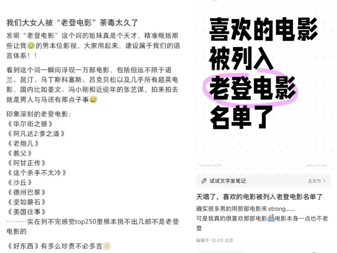 这个与“小妞电影”相对应的新词,一般是指那些在女性观众视野中具有“老男人味”的电影。如今,当一部新电影上映时,我们必须经历一个识别“味道浓度”的过程。根据男主的年龄和电影的价值取向,中登和小登电影也衍生出来。