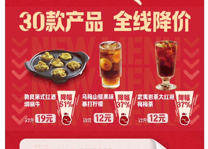 十二月二日,必胜客在全国范围内推出了2025年全新菜单,其中,全线30款产品均有不同程度的降价,降幅最高达51%。