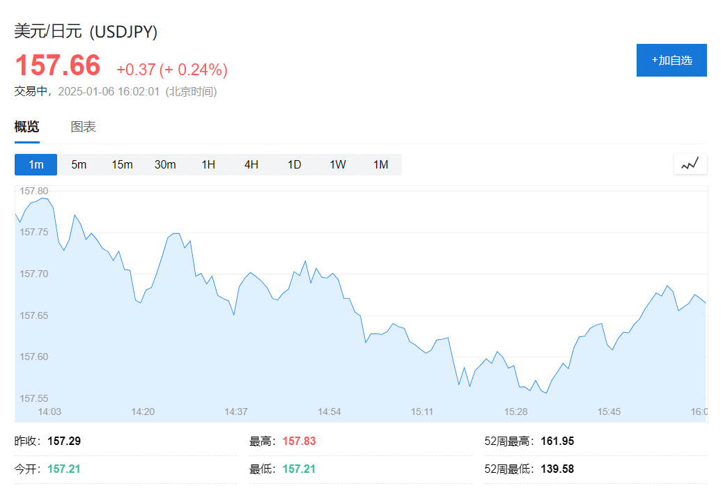 然而,12月份的会议记录总结表明,一些董事会成员认为有必要尽快提高贷款成本。植田和男子周一的评论也强调,日本央行本月可能会提高利率,但也可能会根据情况选择等待。这种不确定性使得日元保持在一个相对较弱的水平。目前,美元对日元上涨0.24%,报告为157.66。