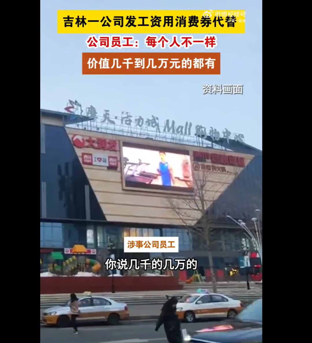 该员工表示,支付的是工资券,而不是年终的额外福利。长春市重庆路活力城和摩天活力城的老板是一家人。