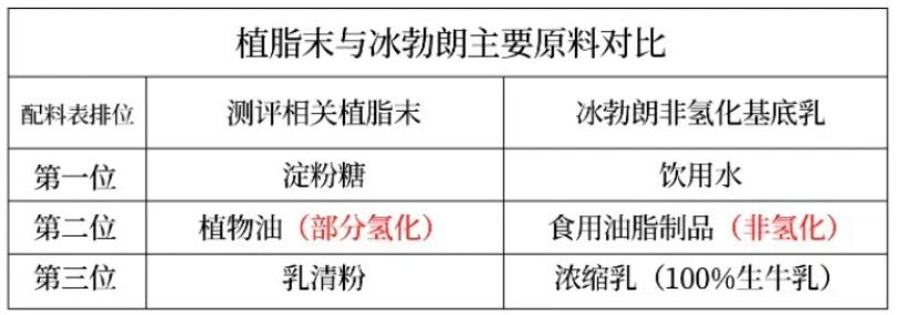评价内容称为冰勃朗和植脂粉的配方相似,但仔细对比不难发现,所谓的“相似”结果都是基于忽视含量和调味技术。