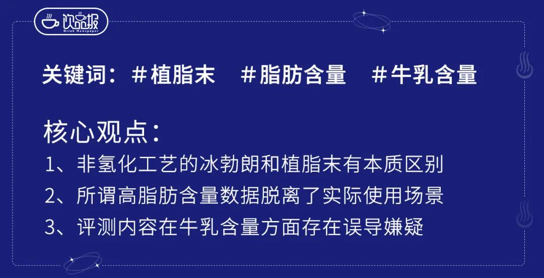 如果跟随评价的内容,相当于整个产业链多年摆脱的“植脂粉”标签被强行压在头上。事实上,在过去的几年甚至前10年里,在整个产业链的努力下, 新茶已告别植脂末时代。。