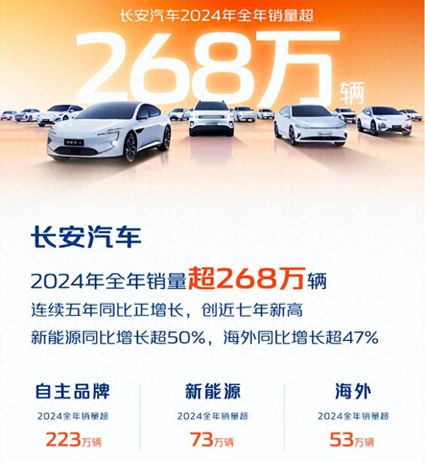根据各车企全年销售数据,比亚迪以超过427万台排名第一,同比增长41.26%。全年上汽集团批发销售额401.3万台,进入第一梯队。长安汽车年销售额超过268万辆,创近7年新高,新能源汽车销售额超过73万辆,同比增长50%。奇瑞控股集团宣布,2024年年销售额达到260.3万台,同比增长38.4%,创下年销售新高。