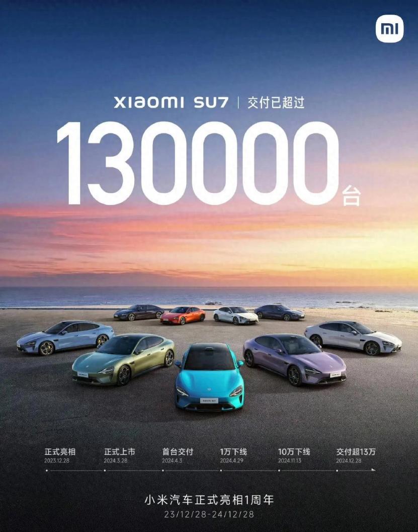 小米汽车还公布了2024年12月交付量和年销量,其中12月交付量突破2.5万辆,连续3个月交付量突破2万辆。自今年4月交付以来,累计交付量突破13.5万辆,交付目标提前完成。