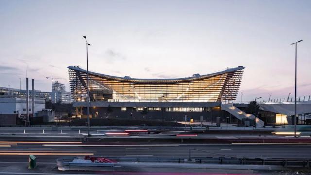水中心。据官方介绍,55 厚度为厘米的木屋顶是一种天然保温材料;中间凹陷减少了场馆内部的体积,从而减少了加热和调节气体所需的能量|Salem Mostefaoui / Olympics.com